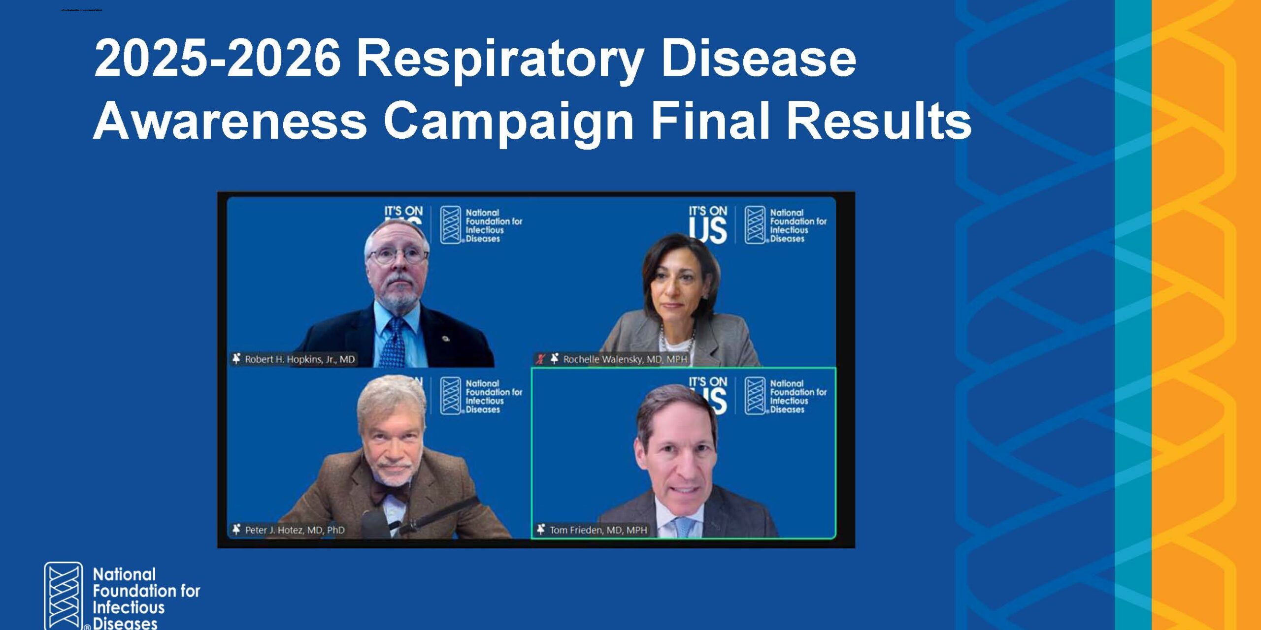 A lo largo de la temporada respiratoria 2025-2026, la National Foundation for Infectious Diseases (NFID) avanzó en su visión de vidas más saludables para todos al liderar la campaña "It's On Us", una iniciativa diseñada para elevar la información clara y basada en evidencia sobre la prevención y el tratamiento de enfermedades respiratorias en un entorno de salud pública cada vez más complejo marcado por recomendaciones en evolución, variantes emergentes e información errónea persistente.